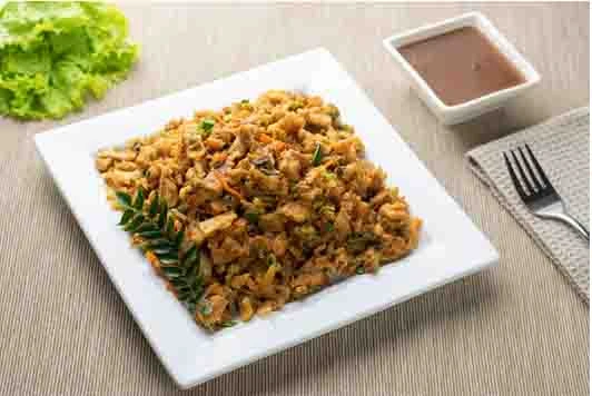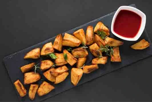 Dices of baby potatoes tandoori aloo mixed in a special variety of piquant Indian herbs sauced.